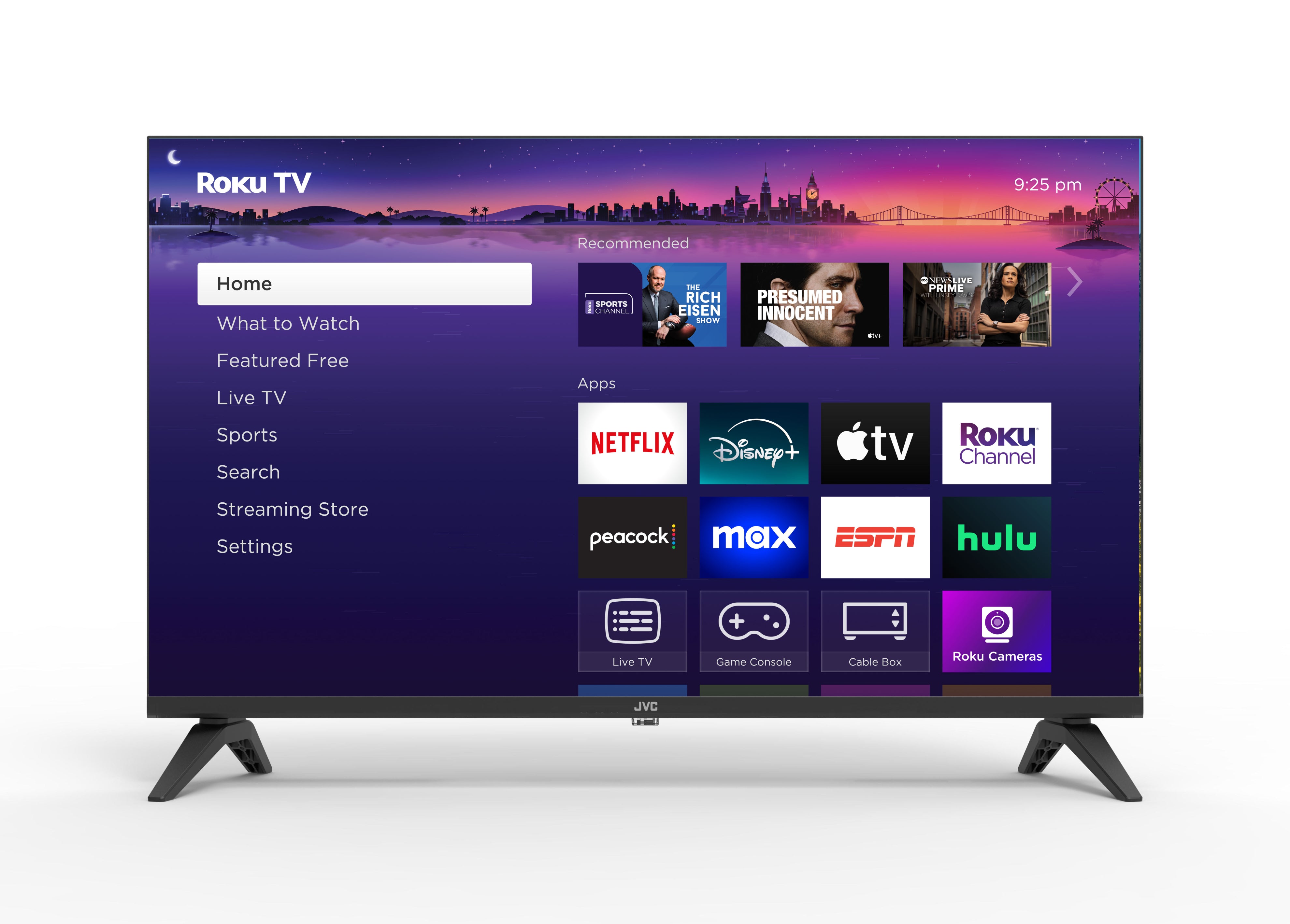 Start streaming your favorite show, access your cable box or HD antenna, even fire up your gaming cosole-all from your home screen. With Featured Free on your home screen, you're one click away from hundreds offree movies, TV episodes, and live news from channels like The Roku Channel, ABC, CW and more. Easilysearch across top channels for results ranked by price. Use the free Roku mobile app for iOS ir Androiddevices to search by voice, cast personal media or video, and control your TV. JVC 32" Class 720p Roku TV(LT-32EP4156W)