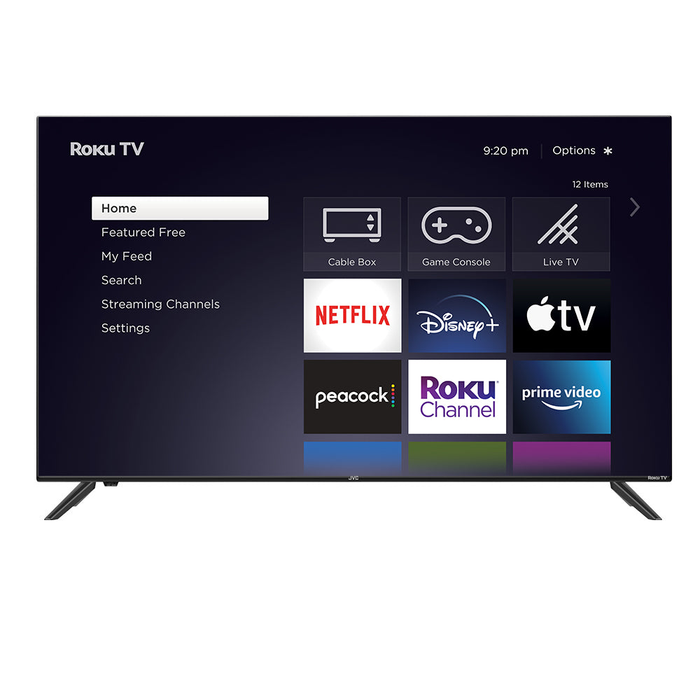 JVC 55" Class 4K UHD 2160p Roku Smart TV is more than a smart TV - it's a better TV. All of your entertainment is in one place with access to over 500,000 movies, TV episodes, and more than 5,000 streaming channels. Start streaming your favorite shows, access your cable box or HD antenna, even fire up your gaming console - all from your home screen. With Featured Free on your home screen, you're one click away from hundreds of free movies, TV episodes, and live news from channels like The Roku Channel, ABC, CW and more. Easily search across top channels for results ranked by price. Use the free Roku mobile app for iOS or Android devices to search by voice, cast personal media or video, and control your TV. Bring home the JVC 55" Class 4K UHD 2160p Roku Smart TV and treat yourself to a better viewing experience.